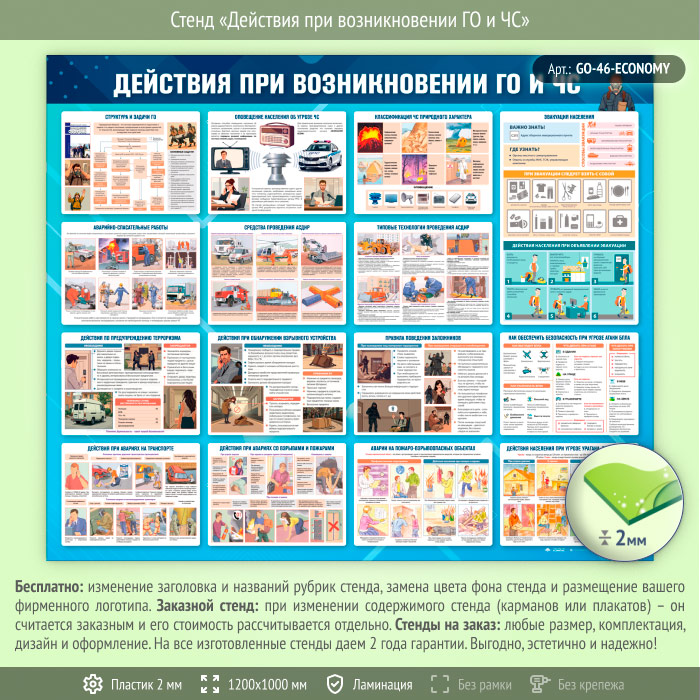 Стенд «Действия при возникновении ГО и ЧС» (GO-46-ECONOMY) в Уфе купить