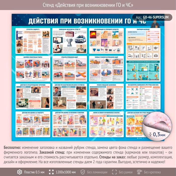 Стенд «Действия при возникновении ГО и ЧС» (GO-46-SUPERSLIM) в Уфе купить