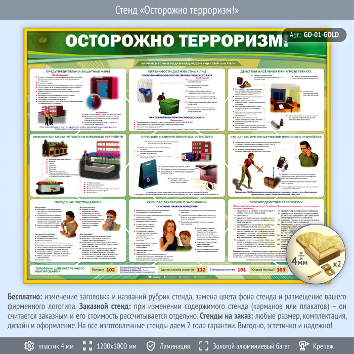 Стенд «Осторожно терроризм!» (GO-01-GOLD) в Уфе купить