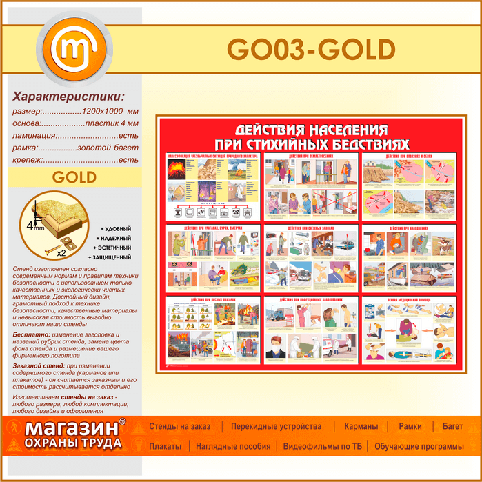 Стенд «Действия населения при стихийных бедствиях» (GO-03-GOLD) в Уфе купить