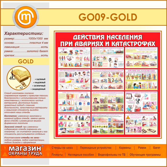 Стенд «Действия населения при авариях и катастрофах» (GO-09-GOLD) в Уфе купить