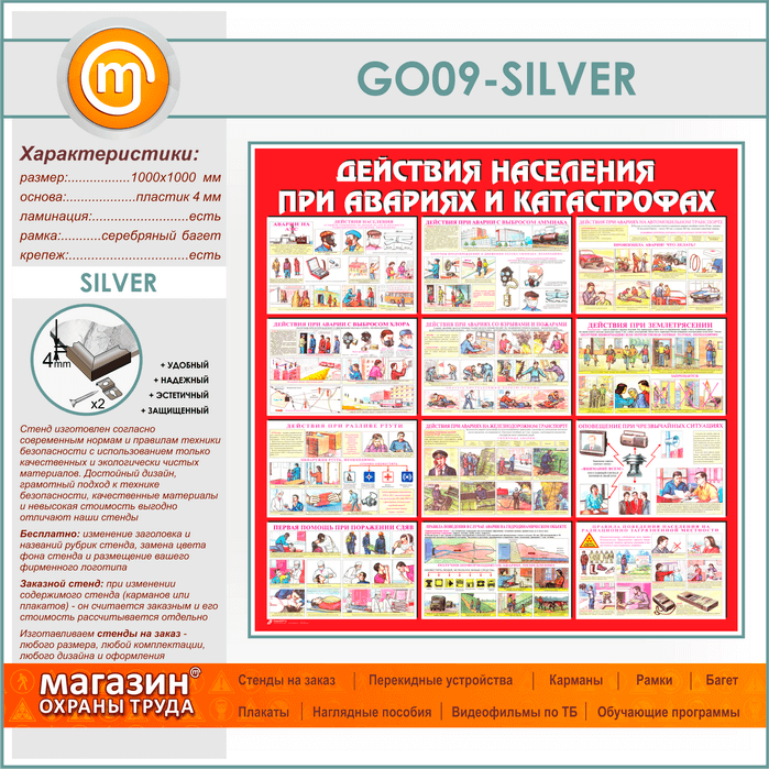 Стенд «Действия населения при авариях и катастрофах» (GO-09-SILVER) в Уфе купить