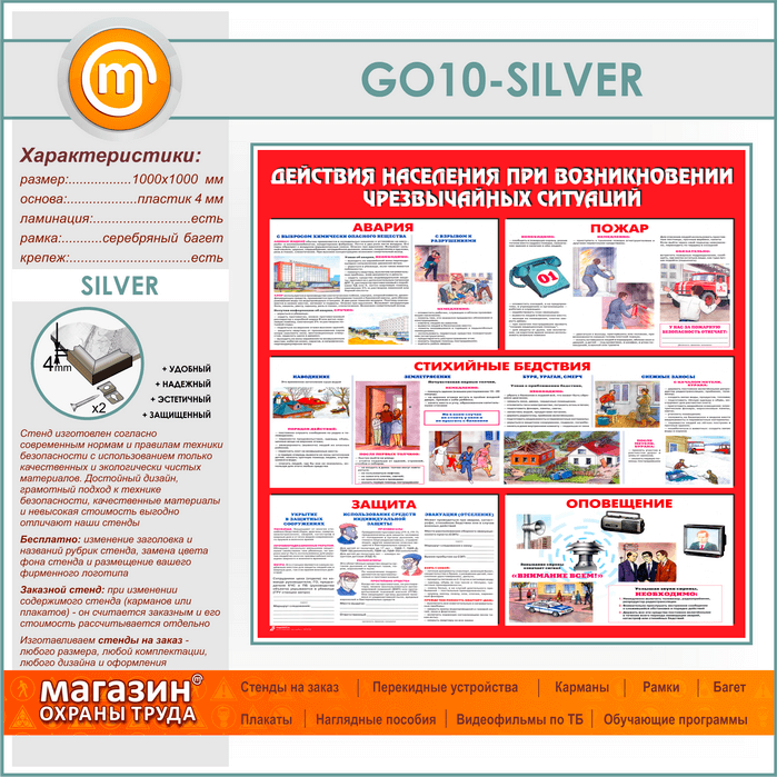 Стенд «Действия населения при возникновении чрезвычайных ситуаций» (GO-10-SILVER) в Уфе купить