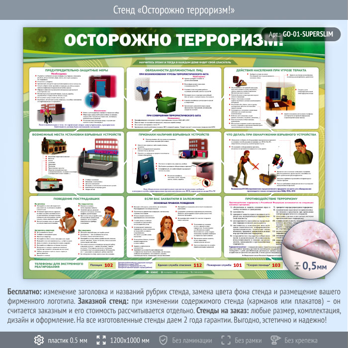 Стенд «Осторожно терроризм!» (GO-01-SUPERSLIM) в Уфе купить