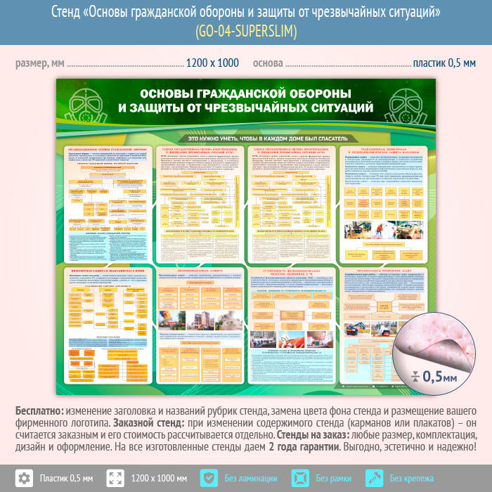 Стенд «Основы гражданской обороны и защиты от чрезвычайных ситуаций» (GO-04-SUPERSLIM) в Уфе купить
