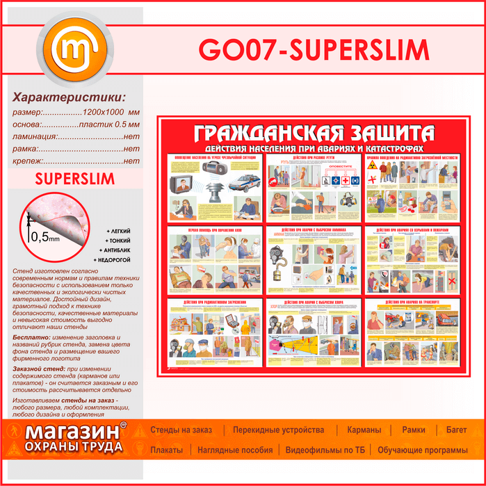 Стенд «Гражданская защита» (GO-07-SUPERSLIM) в Уфе купить