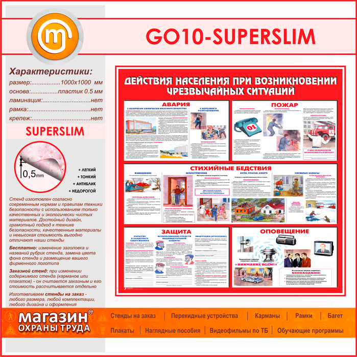 Стенд «Действия населения при возникновении чрезвычайных ситуаций» (GO-10-SUPERSLIM) в Уфе купить