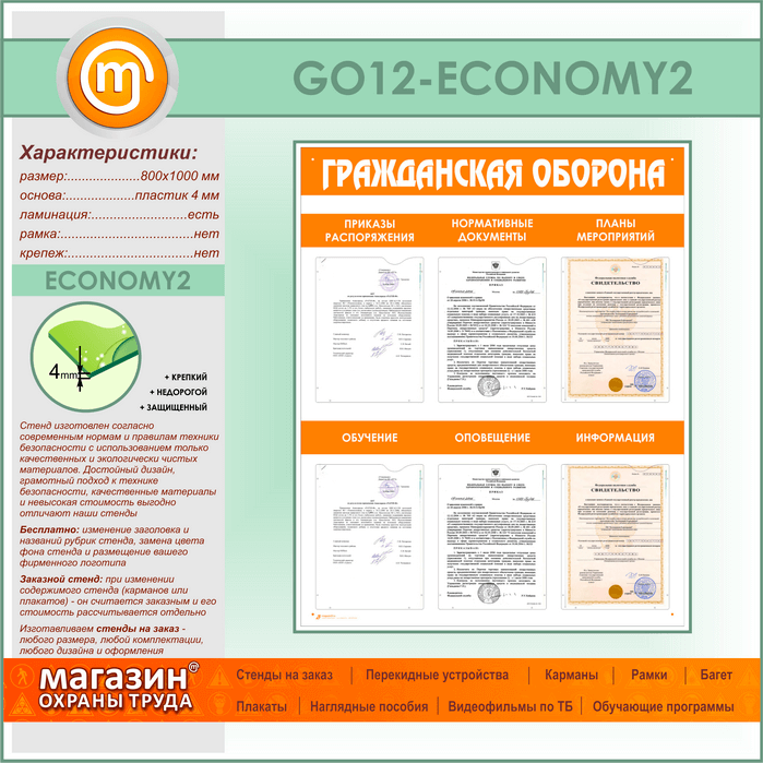 Стенд «Гражданская оборона» с 6 плоскими карманами (GO-12-ECONOMY2) в Уфе купить