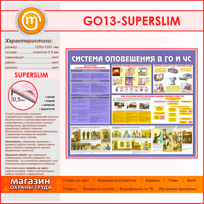 Стенд «Система оповещения в ГО и ЧС» (GO-13-SUPERSLIM) в Уфе купить