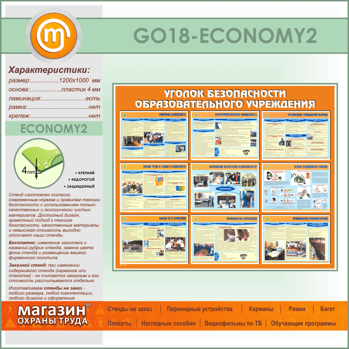 Стенд «Уголок безопасности образовательного учреждения» (GO-18-ECONOMY2) в Уфе купить