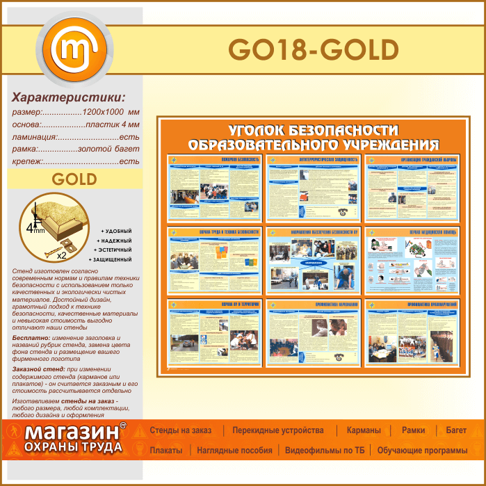 Стенд «Уголок безопасности образовательного учреждения» (GO-18-GOLD) в Уфе купить