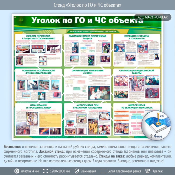Стенд «Уголок по ГО и ЧС объекта» (GO-21-POPULAR) в Уфе купить