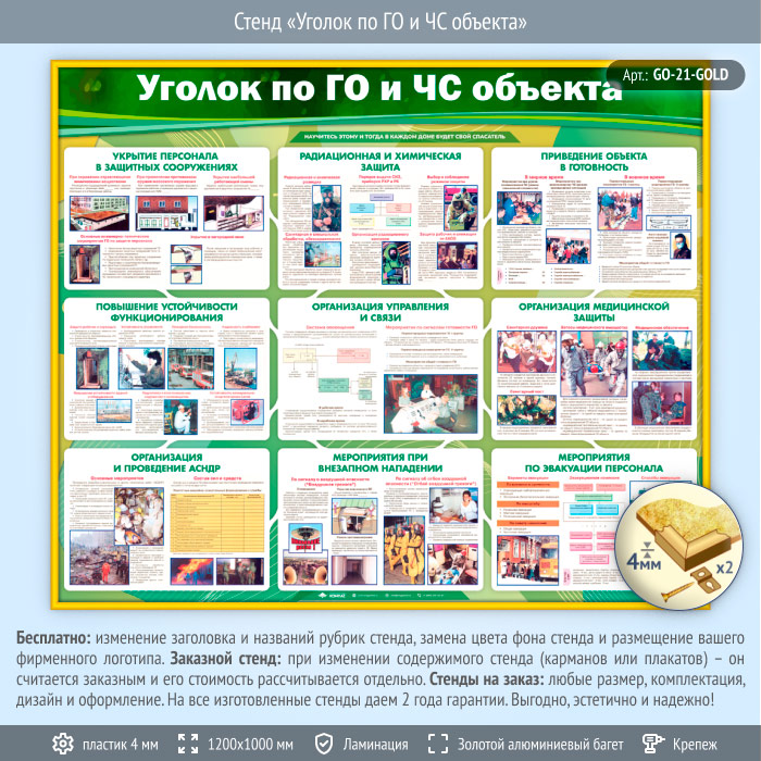 Стенд «Уголок по ГО и ЧС объекта» (GO-21-GOLD) в Уфе купить