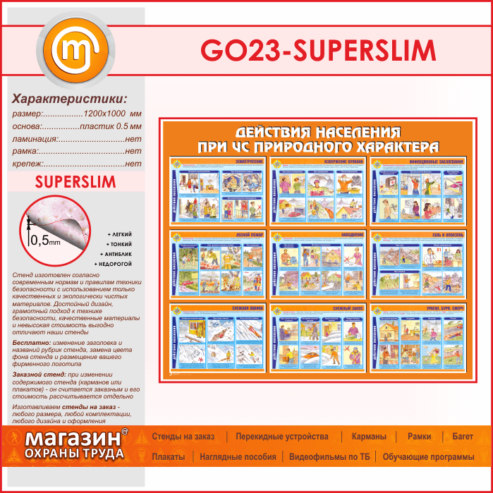 Стенд «Действия населения при ЧС природного характера» (GO-23-SUPERSLIM) в Уфе купить