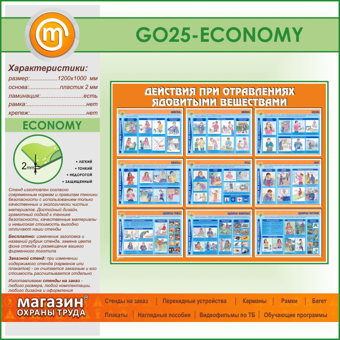 Стенд «Действия при отравлении ядовитыми веществами» (GO-25-ECONOMY) в Уфе купить