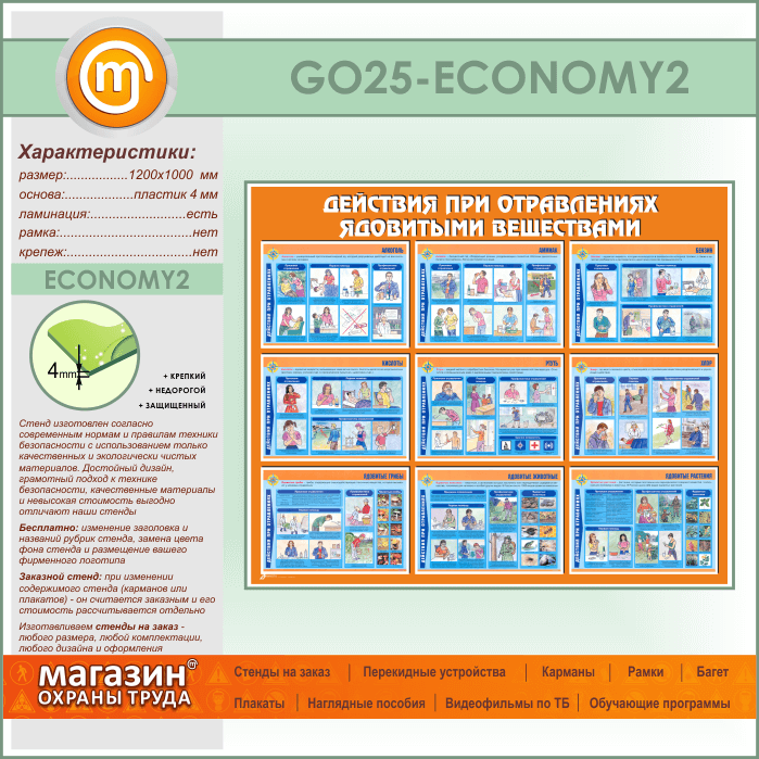 Стенд «Действия при отравлении ядовитыми веществами» (GO-25-ECONOMY2) в Уфе купить