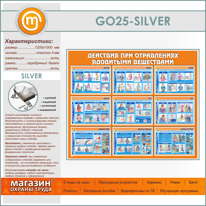 Стенд «Действия при отравлении ядовитыми веществами» (GO-25-SILVER) в Уфе купить