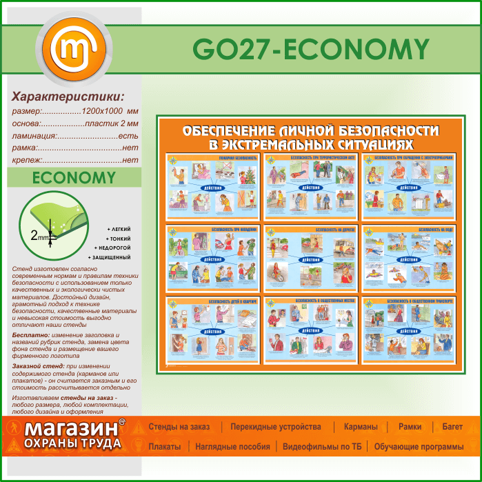 Стенд «Обеспечение личной безопасности в экстремальных ситуациях» (GO-27-ECONOMY) в Уфе купить