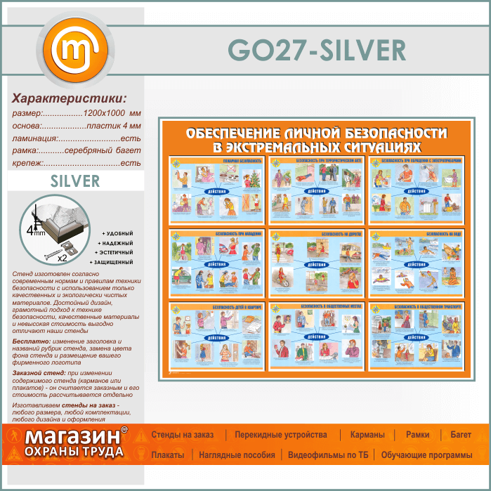 Стенд «Обеспечение личной безопасности в экстремальных ситуациях» (GO-27-SILVER) в Уфе купить