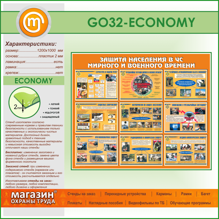 Стенд «Защита населения в ЧС мирного и военного времени» (GO-32-ECONOMY) в Уфе купить