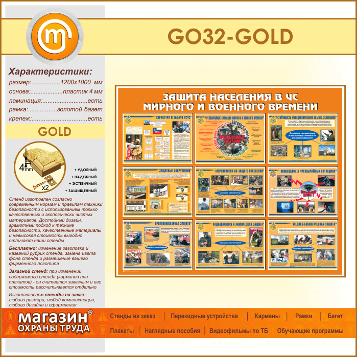 Стенд «Защита населения в ЧС мирного и военного времени» (GO-32-GOLD) в Уфе купить