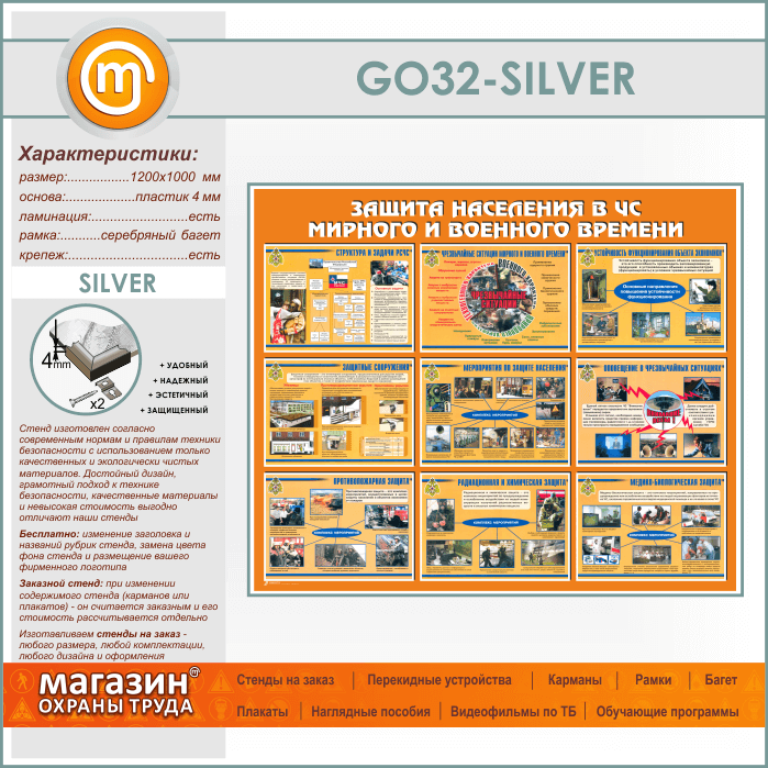 Стенд «Защита населения в ЧС мирного и военного времени» (GO-32-SILVER) в Уфе купить