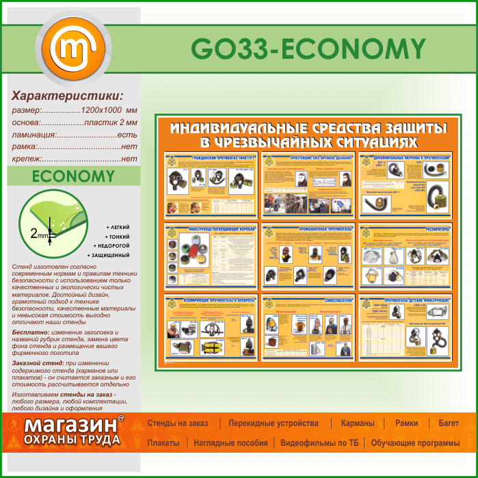 Стенд «Индивидуальные средства защиты в чрезвычайных ситуациях» (GO-33-ECONOMY) в Уфе купить