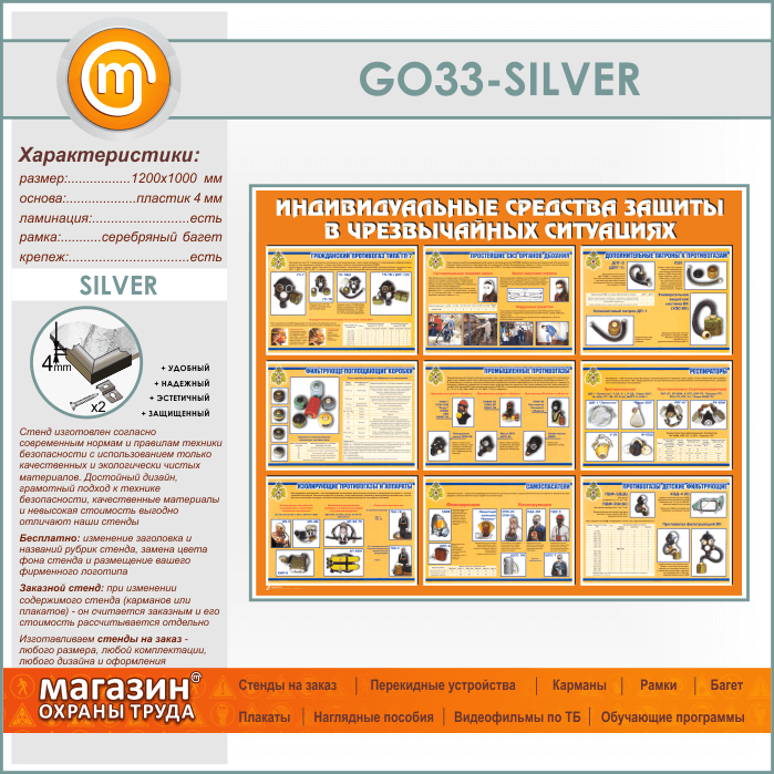 Стенд «Индивидуальные средства защиты в чрезвычайных ситуациях» (GO-33-SILVER) в Уфе купить