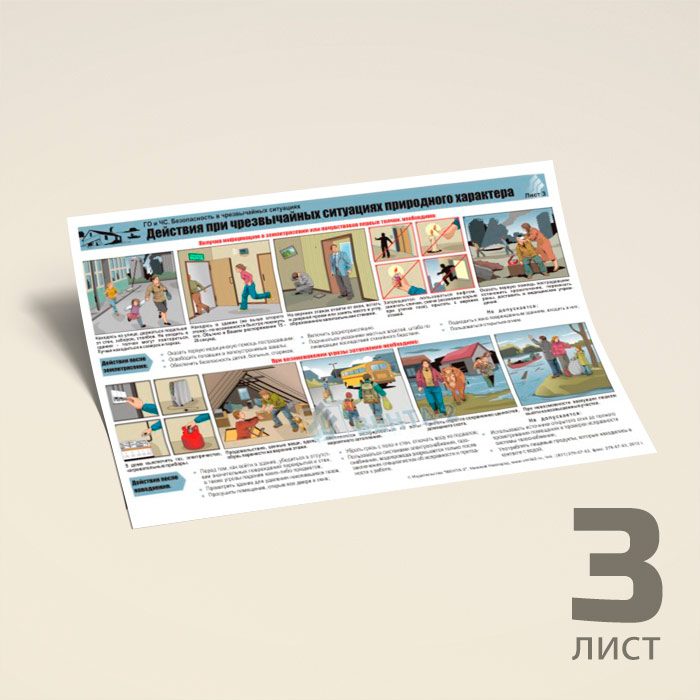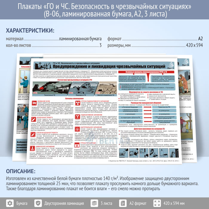 Плакаты «ГО и ЧС. Безопасность в чрезвычайных ситуациях» (В-06, ламинированная бумага, А2, 3 листа) в Уфе купить