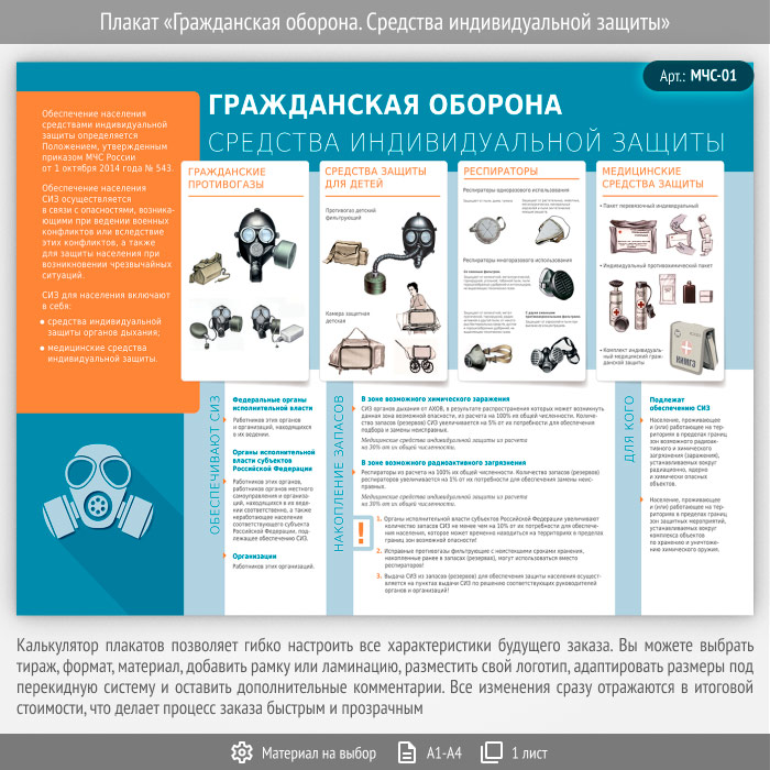 Плакат «Гражданская оборона. Средства индивидуальной защиты» (МЧС-01, 1 лист) в Уфе купить