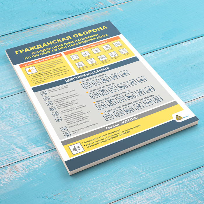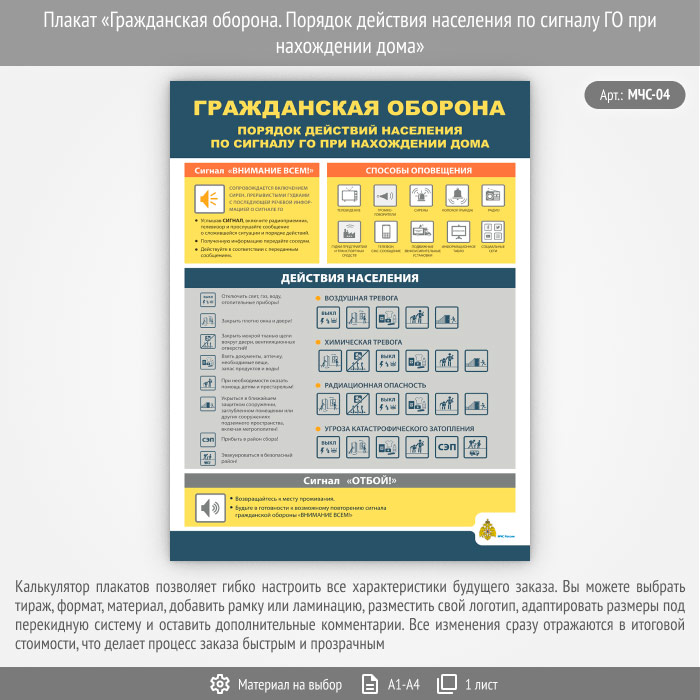 Плакат «Гражданская оборона. Порядок действия населения по сигналу ГО при нахождении дома» (МЧС-04, 1 лист) в Уфе купить