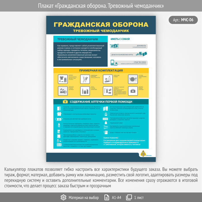 Плакат «Гражданская оборона. Тревожный чемоданчик» (МЧС-06, 1 лист) в Уфе купить