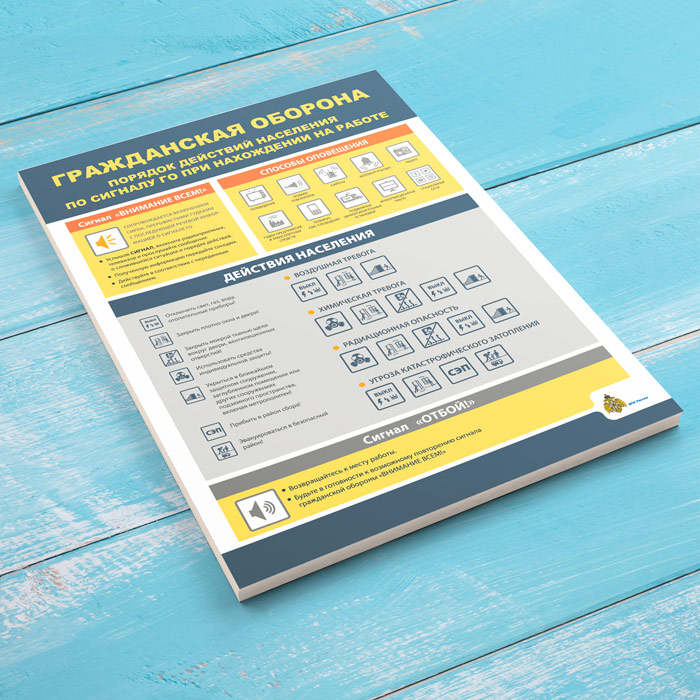 Плакат «Гражданская оборона. Порядок действия населения по сигналу ГО при нахождении на работе» (МЧС-09, 1 лист) в Уфе купить