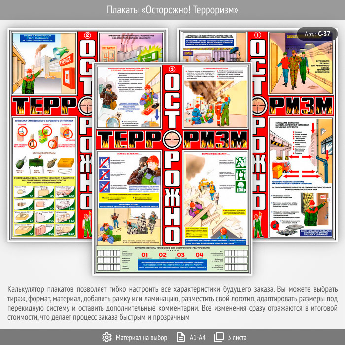 Плакаты «Осторожно! Терроризм» (С-37, 3 листа) в Уфе купить