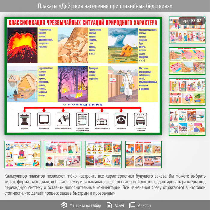 Плакаты «Действия населения при стихийных бедствиях» (ВЗ-02, 9 листов) в Уфе купить