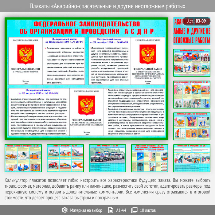 Плакаты «Аварийно-спасательные и другие неотложные работы» (ВЗ-09, 9 листов) в Уфе купить