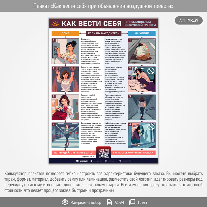 Плакат «Как вести себя при объявлении воздушной тревоги» с QR (М-139, 1 лист) в Уфе купить
