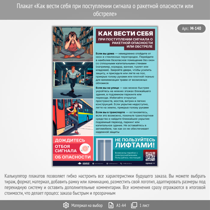 Плакат «Как вести себя при поступлении сигнала о ракетной опасности или обстреле» с QR (М-140, 1 лист) в Уфе купить