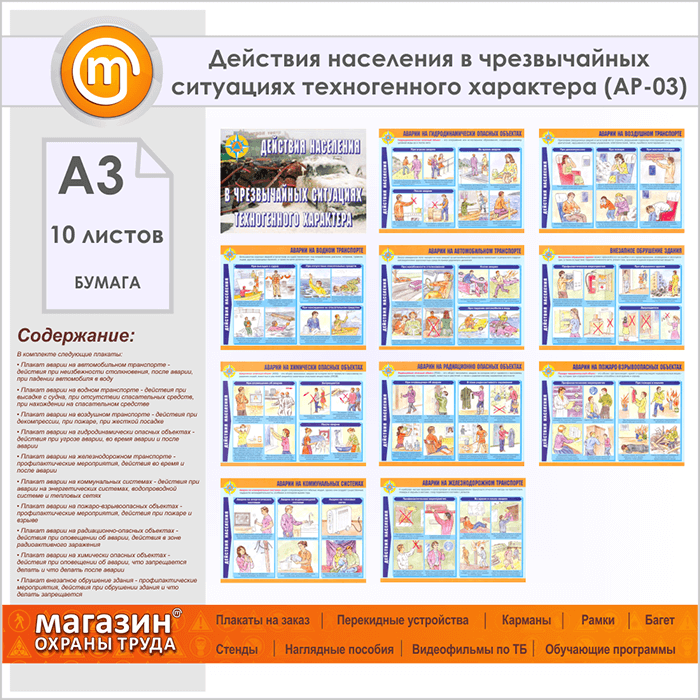 Плакаты «Действия населения в чрезвычайных ситуациях техногенного характера» (АР-03, бумага, А3, 10 листов) в Уфе купить