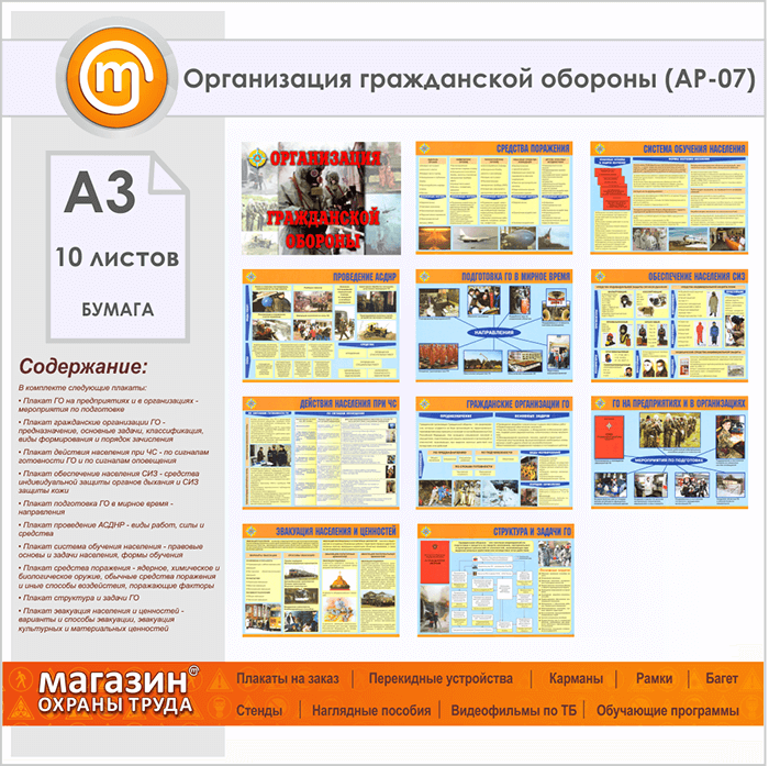 Плакаты «Организация гражданской обороны» (АР-07, бумага, А3, 10 листов) в Уфе купить