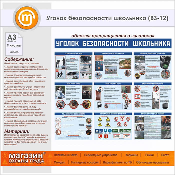 Плакаты «Уголок безопасности школьника» (ВЗ-12, бумага, А3, 10 листов) в Уфе купить