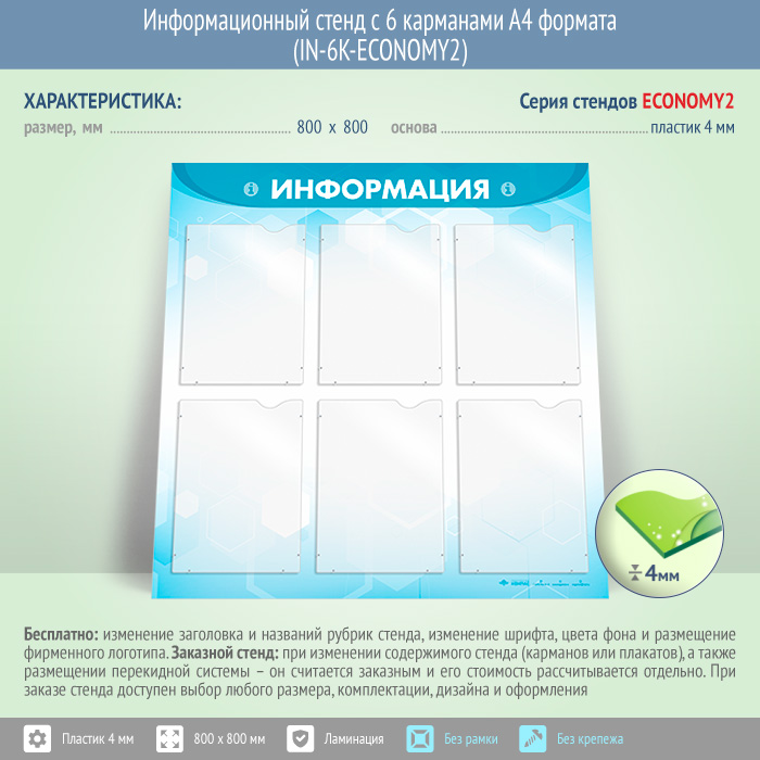 Информационный стенд с 6 карманами А4 формата (IN-6K-ECONOMY2) в Уфе купить