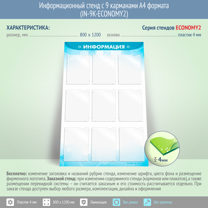 Информационный стенд с 9 карманами А4 формата (IN-9K-ECONOMY2) в Уфе купить