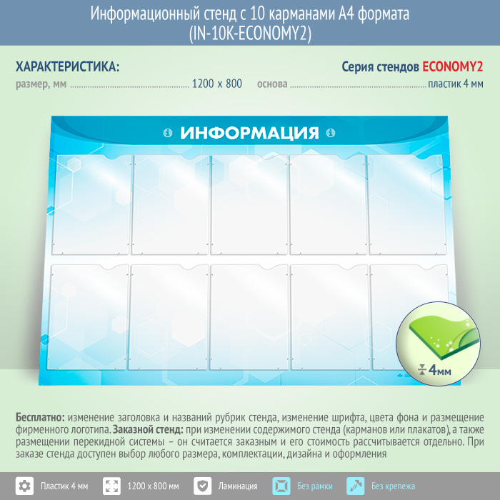 Информационный стенд с 10 карманами А4 формата (IN-10K-ECONOMY2) в Уфе купить