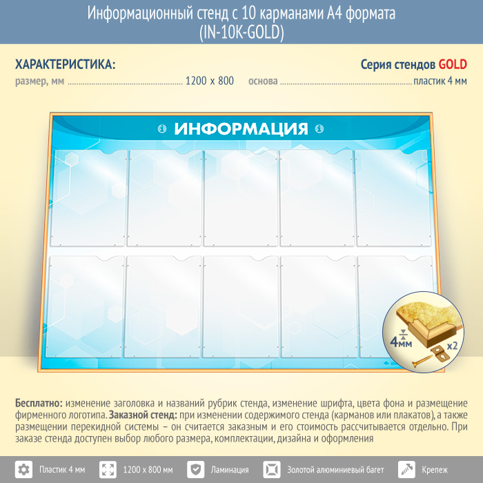 Информационный стенд с 10 карманами А4 формата (IN-10K-GOLD) в Уфе купить