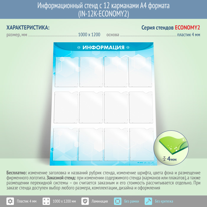 Информационный стенд с 12 карманами А4 формата (IN-12K-ECONOMY2) в Уфе купить