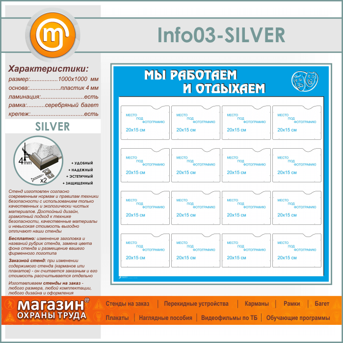 Стенд «Мы работаем и отдыхаем» с 16 карманами А5 формата (IN-03-SILVER) в Уфе купить