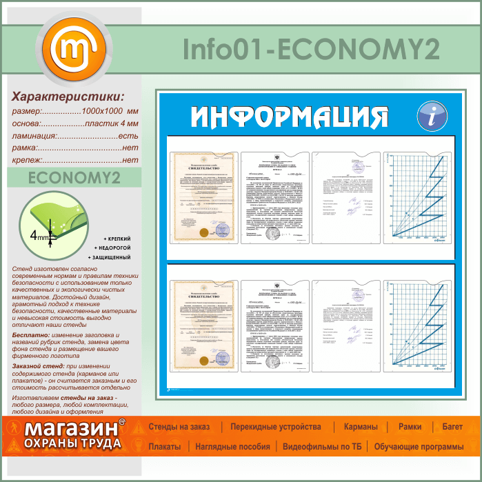 Стенд «Информация» с 8 карманами А4 формата (IN-01-ECONOMY2) в Уфе купить