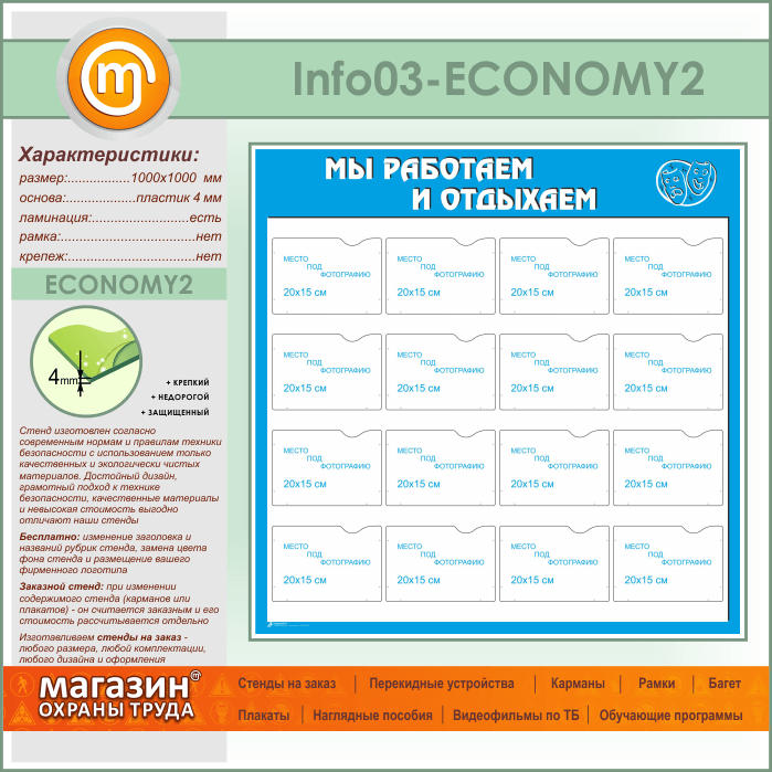 Стенд «Мы работаем и отдыхаем» с 16 карманами А5 формата (IN-03-ECONOMY2) в Уфе купить