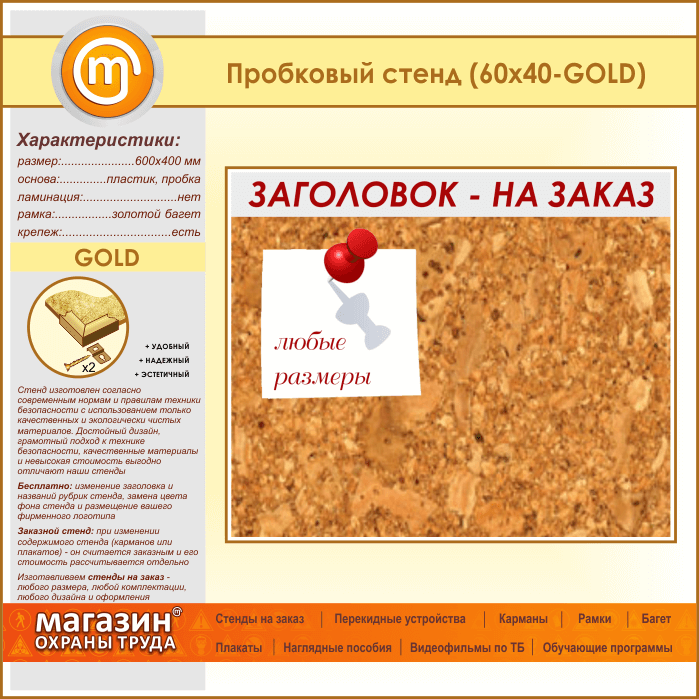 Пробковая доска с заголовком, 60х40 см (IN-06-GOLD) в Уфе купить
